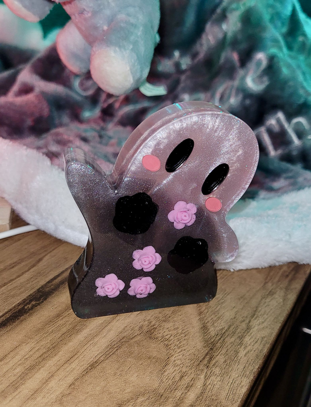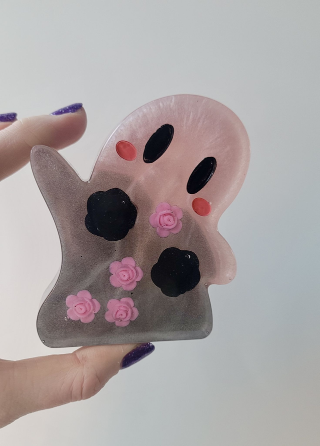 👻 Handmade Resin Ghost – Pink & Black Shimmer