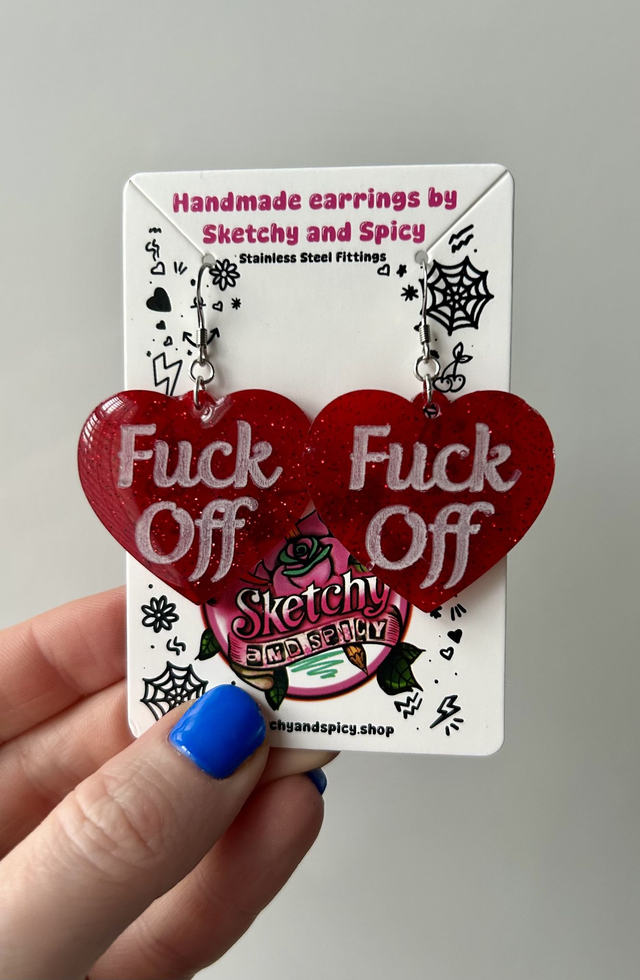 ♥️ Heart Earrings – “Fuck Off”