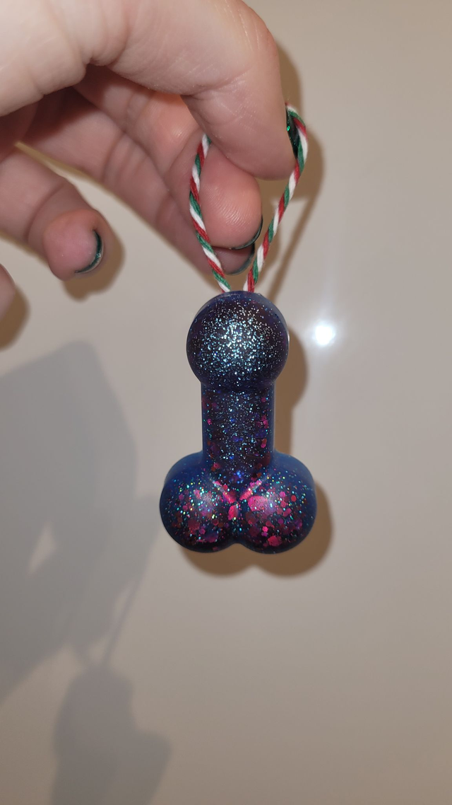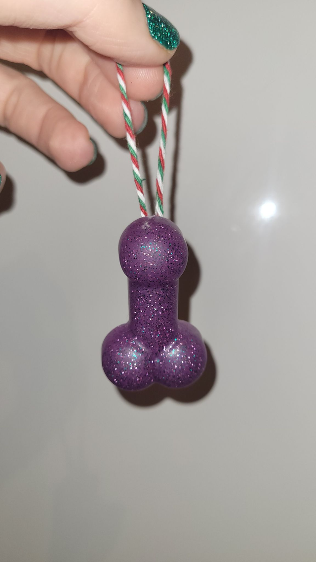 Add a bold, cheeky twist to your festive decor with these handmade penis baubles! Crafted from resin and available in a range of vibrant colours and glitter finishes, each ornament is secured with a glue-gunned rope loop, ready to hang on your Christmas tree, wall, or anywhere you fancy.