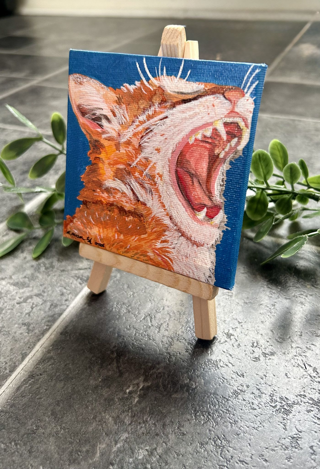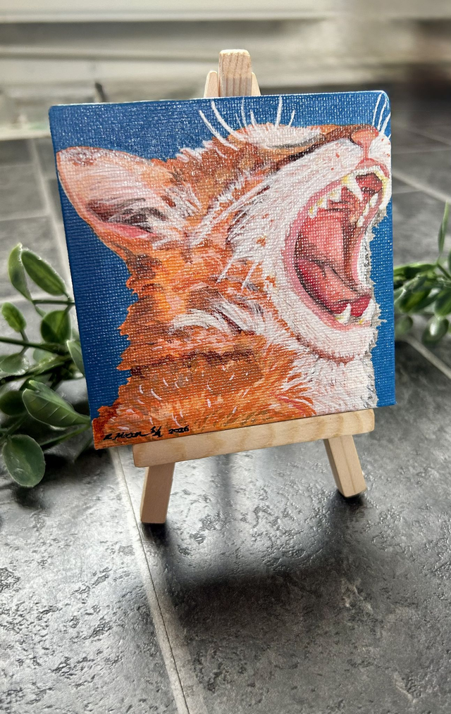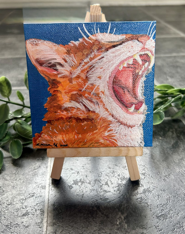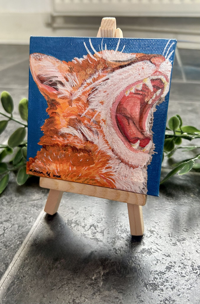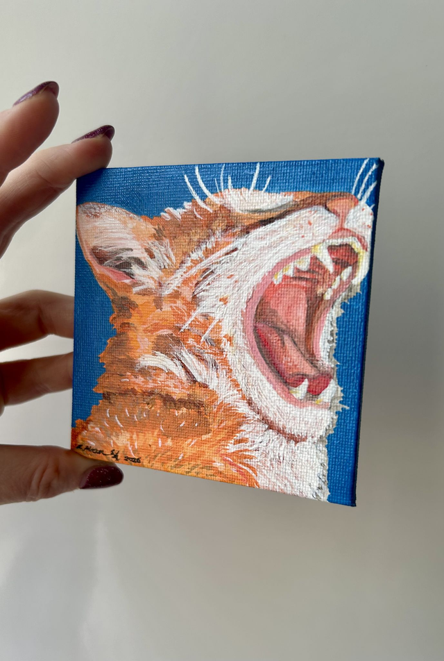 Original Mini Canvas Painting – Ginger Cat Yawn – Original Acrylic Painting (1/1)